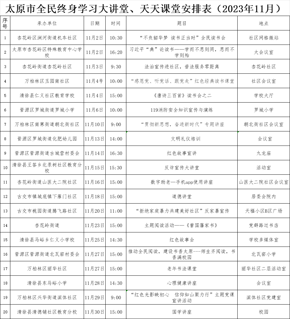 太原市全民终身学习大讲堂、天天课堂安排表(2023年11月)