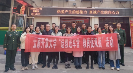 为更好地推进教育拥军项目,切实提升官兵学习满意度,助力人才强军战略,太原开放大学于11月8日下午,在太原市武警某部组织开展了“送教进军营”活动,相关课程辅导教师、班主任及武警某部报考开放教育学历提升的学员共同参加了此次活动。